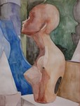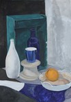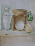 Getekend en geschilderd naar opstelling in atelier.