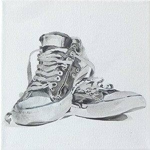 2018Onze Joppe zijn versleten schoenen in acrylverf op doek