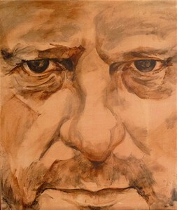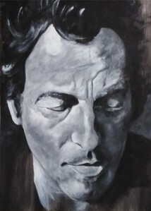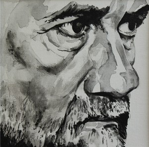 2009Hugo Claus - schrijver/dichter/kunstschilder/filmmaker (°Brugge 1929- +Antwerpen 2008). Getekend en geschilderd naar foto Stephan Vanfleteren