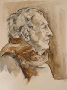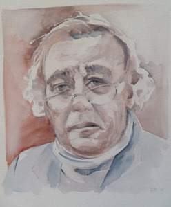 2014Stefan Hertmans - schrijver/dichter/essayist - (°Gent 1951) Stefan Hertmans is een Vlaamse auteur en won de AKO-literatuurprijs 2014 met zijn boek 'Oorlog en Terpentijn'. Getekend en geschilderd naar foto Filip Claus