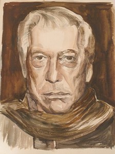 2014Jan Hoet Belgische curator beeldende kunsten (°Leuven 1936-+Gent 2014) Getekend en geschilderd naar foto Johan Jacobs.